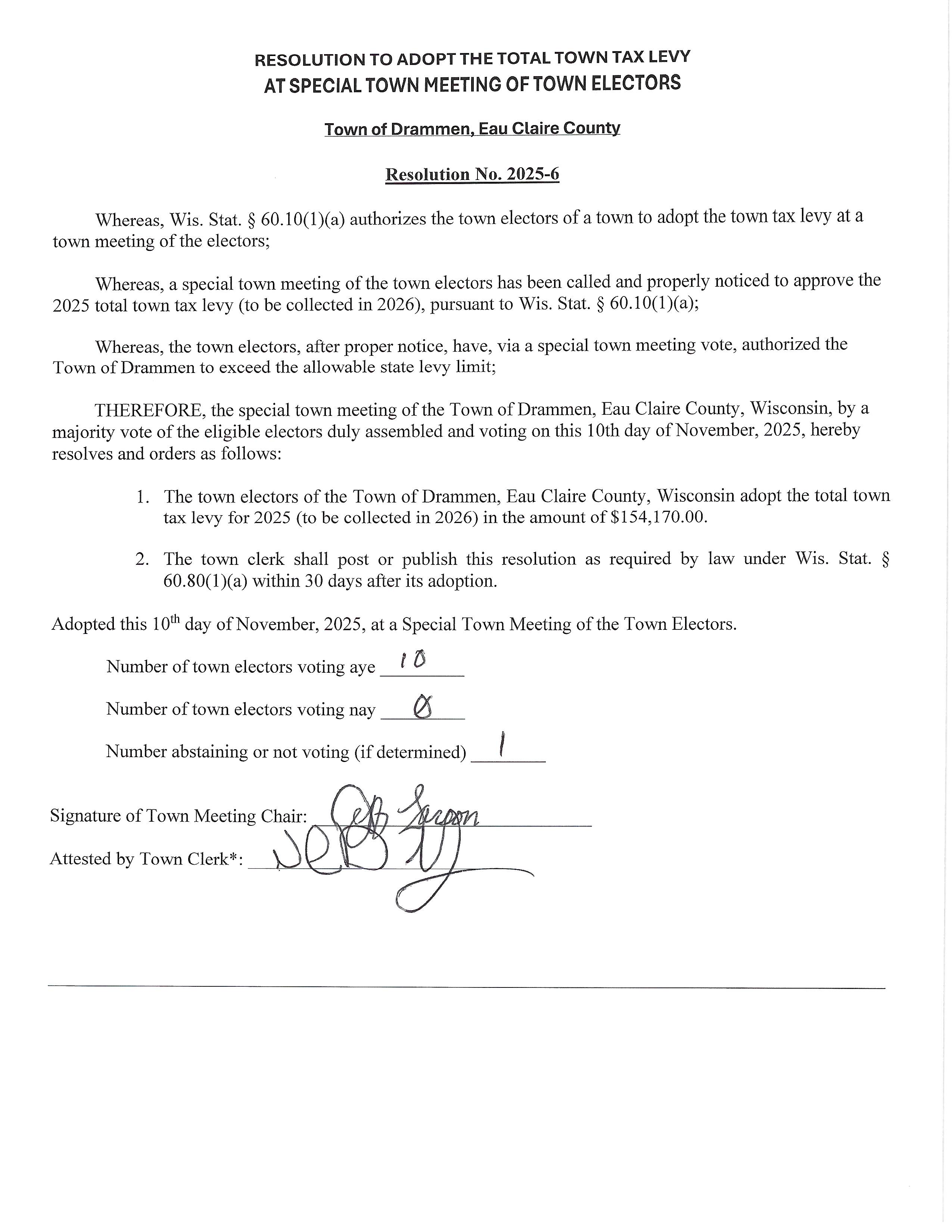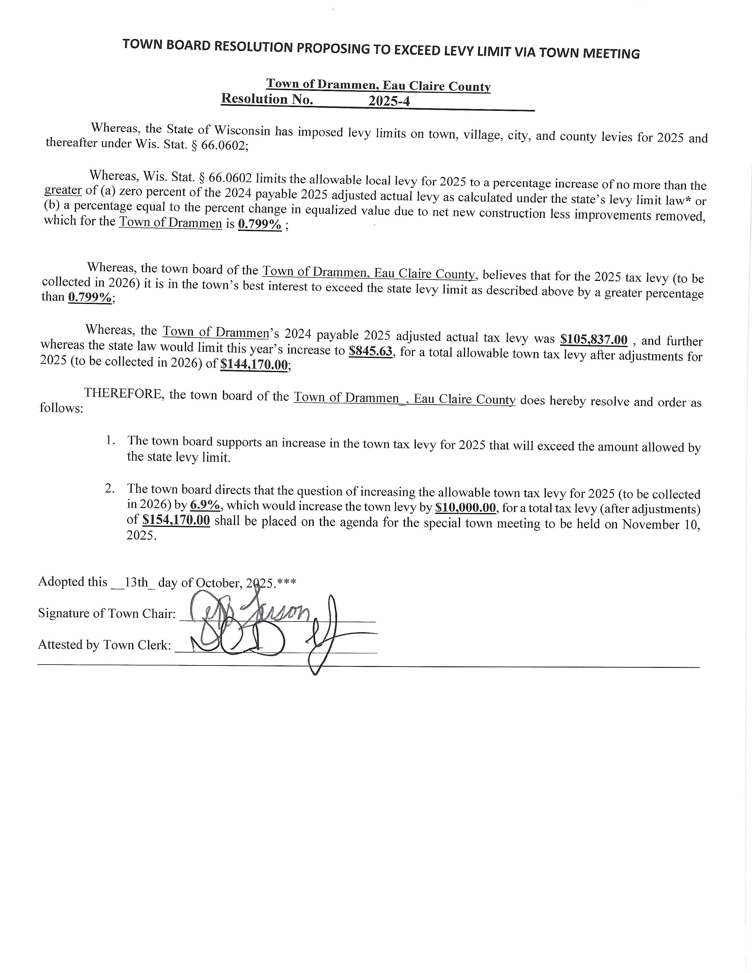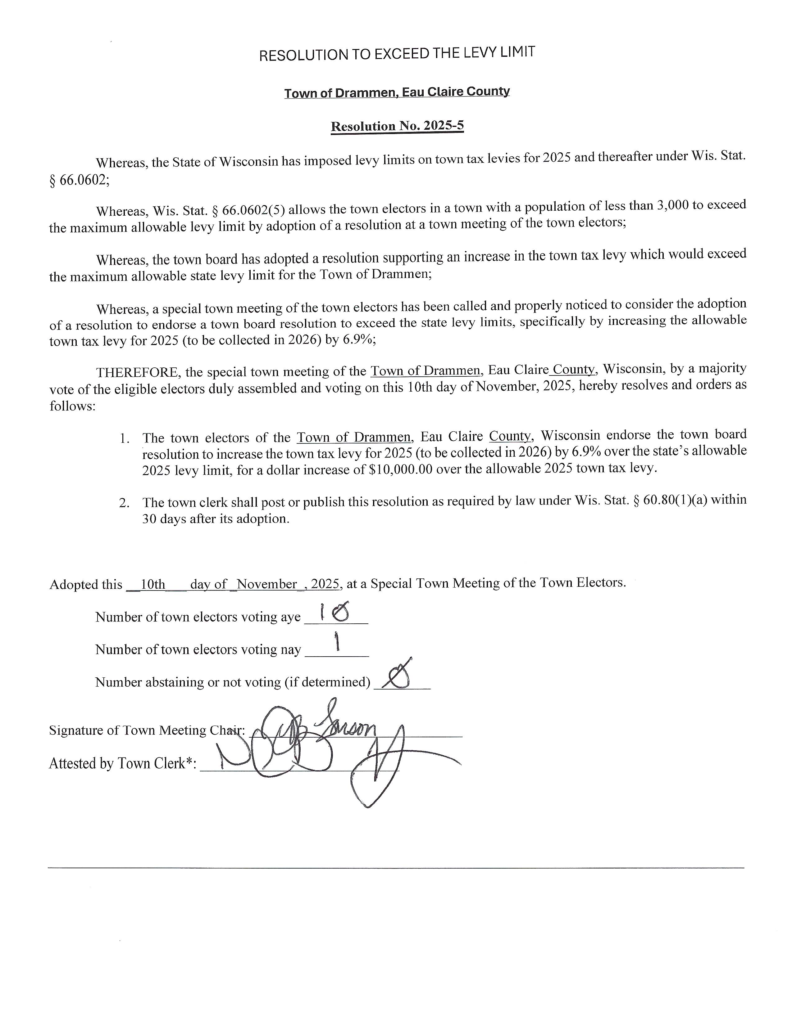 Town Elector Approval of Levy Increase Resolution 25-05